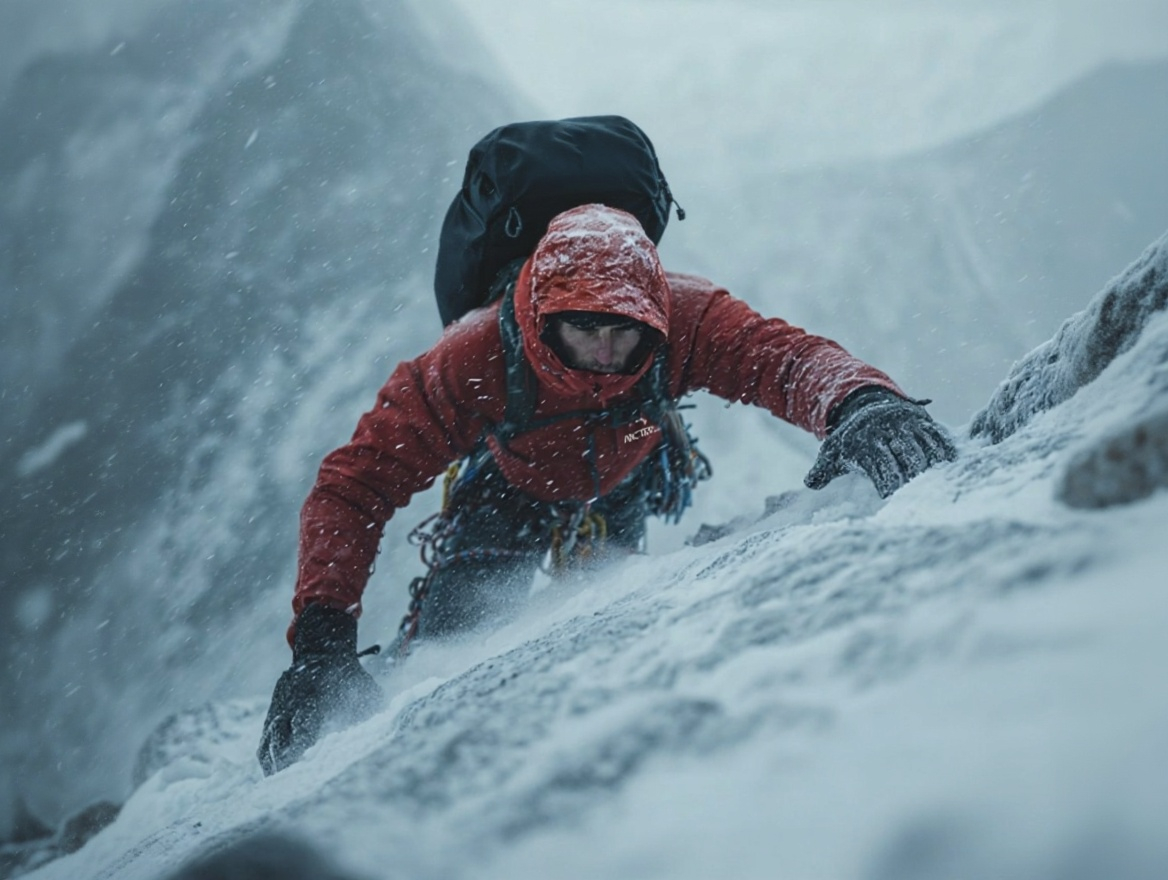 Présenter une veste ARCTERYX, mais de montrer son rôle quand les conditions deviennent réellement exigeantes.
