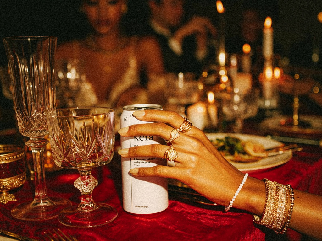 KERA s’inscrit ici comme une boisson qui accompagne la réussite et la célébration, non pas comme un produit fonctionnel, mais comme une boisson qui a une intention.